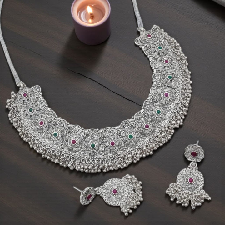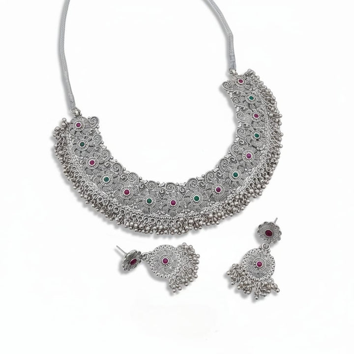 Antique Spiral Stone Oxidized Choker Set