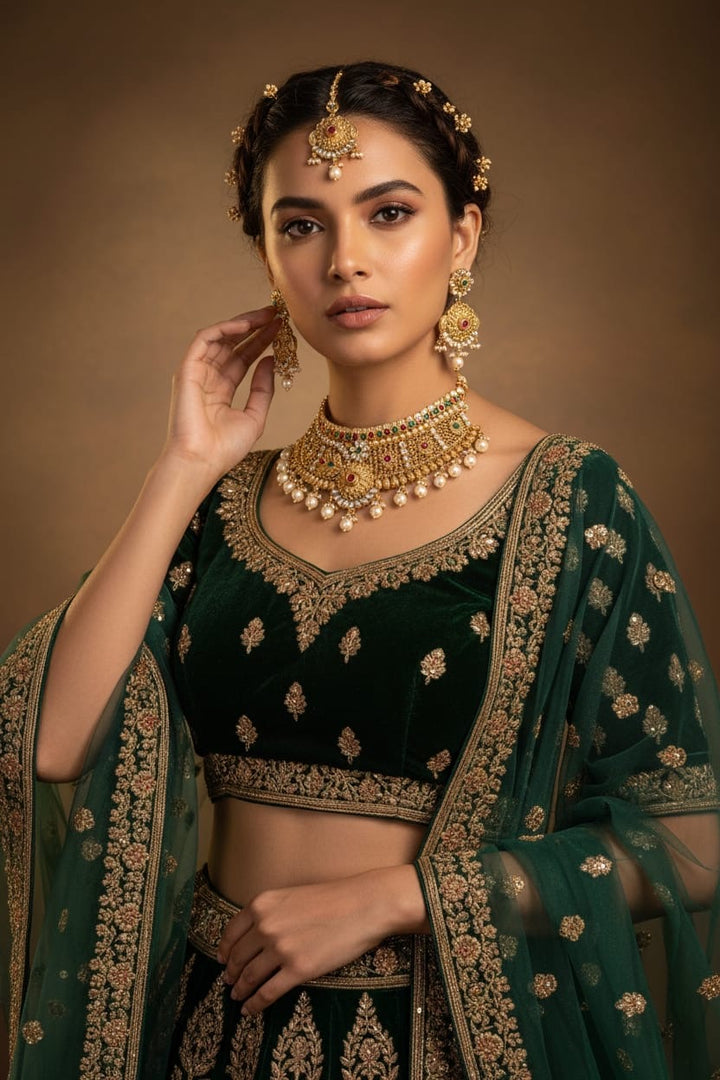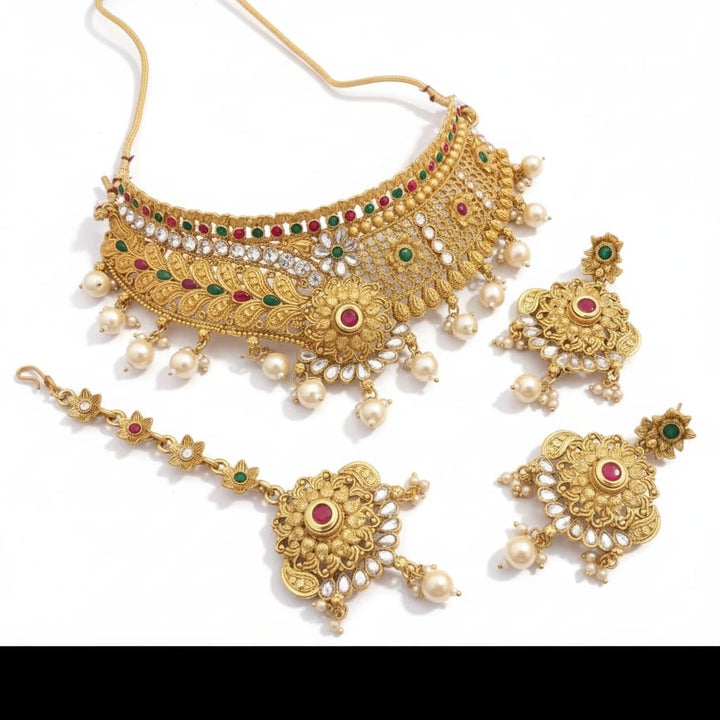- Complete bridal set: choker necklace, earrings, maang tikka