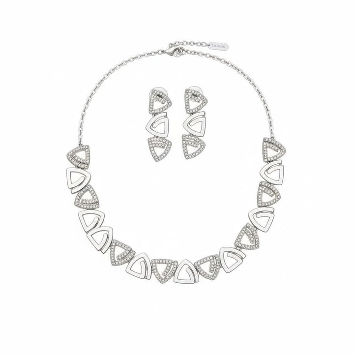 Each piece features Premium Triangular motifs embellished with high-quality cubic zirconia stones, delivering a luxurious sparkle from every angle.
