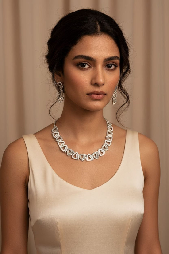 Introduce timeless elegance with our TriAura Diamond Necklace Set, crafted with a unique geometric design that blends modern brilliance with classic charm.
